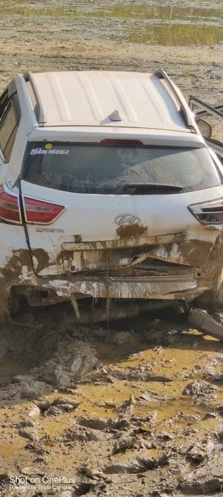 ग्रामीणों ने बताया कि दुर्घटना के बाद क्रेटा का नंबर स्पष्ट नहीं हो सका, लेकिन कार पर “दैनिक भास्कर” लिखा हुआ दिखाई देने की चर्चा है। हालांकि इस संबंध में अब तक कोई आधिकारिक पुष्टि सामने नहीं आई है, जिससे वाहन की पहचान को लेकर स्थिति स्पष्ट नहीं हो पाई है।