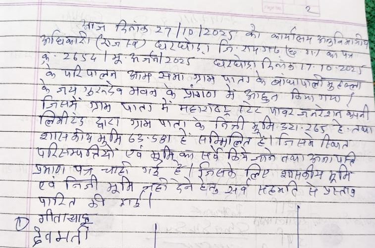 ग्रामीणों ने लिखित आपत्ति पत्र तैयार कर पंचायत के माध्यम से प्रशासन को सौंपा, जिसमें स्पष्ट उल्लेख किया गया है कि पाता ग्राम पंचायत क्षेत्र में सर्वे की अनुमति नहीं दी जाएगी।
