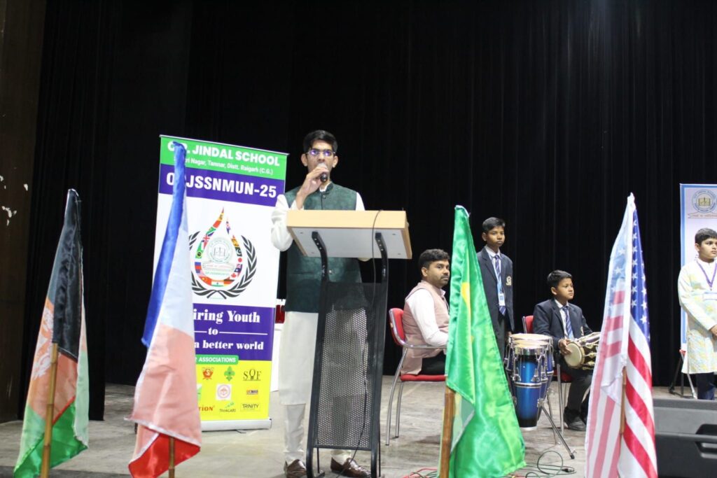 फ्रीलांस एडिटर अमरदीप चौहान/अमरखबर.कॉम सवित्री नगर तमनार। ओपी जिंदल स्कूल में मॉडल यूनाइटेड नेशंस रूहृ का वार्षिक सत्र उत्साहपूर्ण माहौल में आयोजित किया गया। इस अंतर विद्यालयीय प्रतियोगिता में डी.पी.एस. बिलासपुर, डी.ए.वी. गेवरा ओ.पी. जिंदल स्कूलए तराईमाल, ओ.पी. जिंदल स्कूल, सवित्री नगर ने बढ़-चढक़र हिस्सा लिया। यह भव्य आयोजन दिनांक 29 नवंबर एवं 30 नवंबर 2025 को कक्षा छठवीं से बारहवीं के छात्रों के लिए सपन्न हुआ। इस दो दिवसीय सम्मेलन में विभिन्न विद्यालयों के 116 छात्र-छात्राओं ने उत्साहपूर्वक भाग लिया। कार्यक्रम का मुख्य उद्देश्य युवा प्रतिनिधियों को वैश्विक मुद्दों पर चर्चा के लिए एक सशक्त मंच प्रदान करनाए उनमें राजनयिक क्षमता का विकास करना तथा अंतरराष्ट्रीय संबंधों की समझ को व्यापक बनाना था।