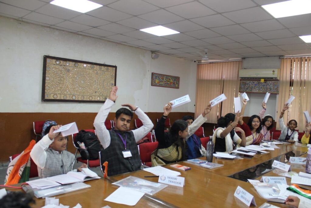 दो दिवसीय कार्यक्रम में विभिन्न विद्यालयों से आए विद्यार्थियों ने अंतरराष्ट्रीय मुद्दों पर गंभीर विचार.विमर्श करते हुए संयुक्त राष्ट्र की कार्यप्रणाली का प्रभावी अनुकरण प्रस्तुत किया।