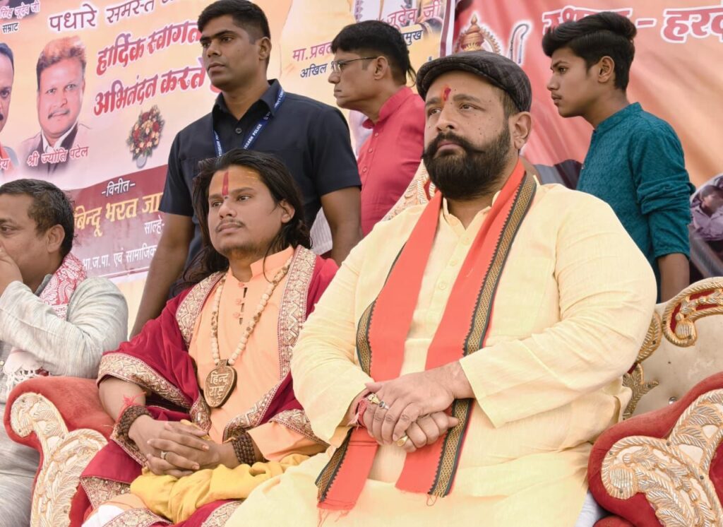 इस अवसर पर अंजू गबेल, हिंदू धर्म सेना के पदाधिकारी, स्थानीय जनप्रतिनिधि और हजारों की संख्या में श्रद्धालु उपस्थित रहे। ग्रामीणों ने पारंपरिक परिधानों में स्वागत किया और पूरा परिसर भगवा झंडों से सुसज्जित था।