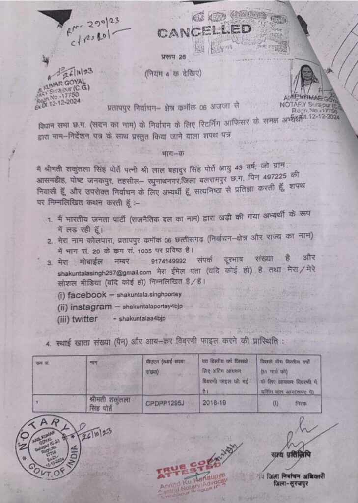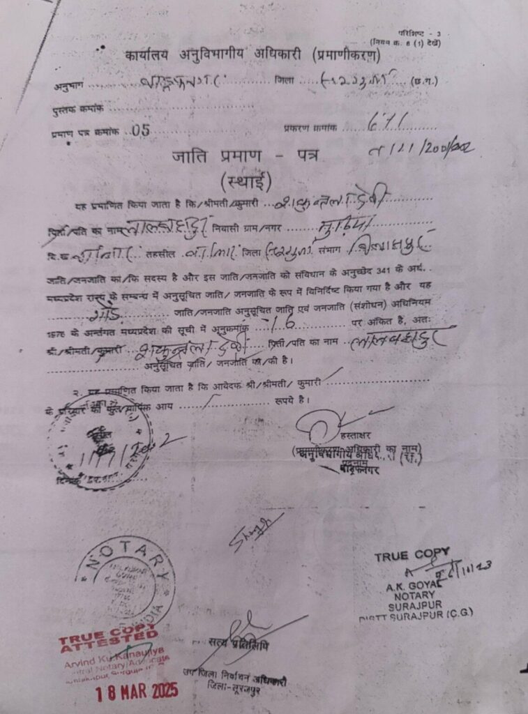 फर्जी ST प्रमाणपत्र घोटाला: प्रतापपुर की BJP विधायक शकुंतला पर संकट! आदिवासी नेता का विस्फोटक आरोप, जांच समिति गठित, FIR और जेल की आहट