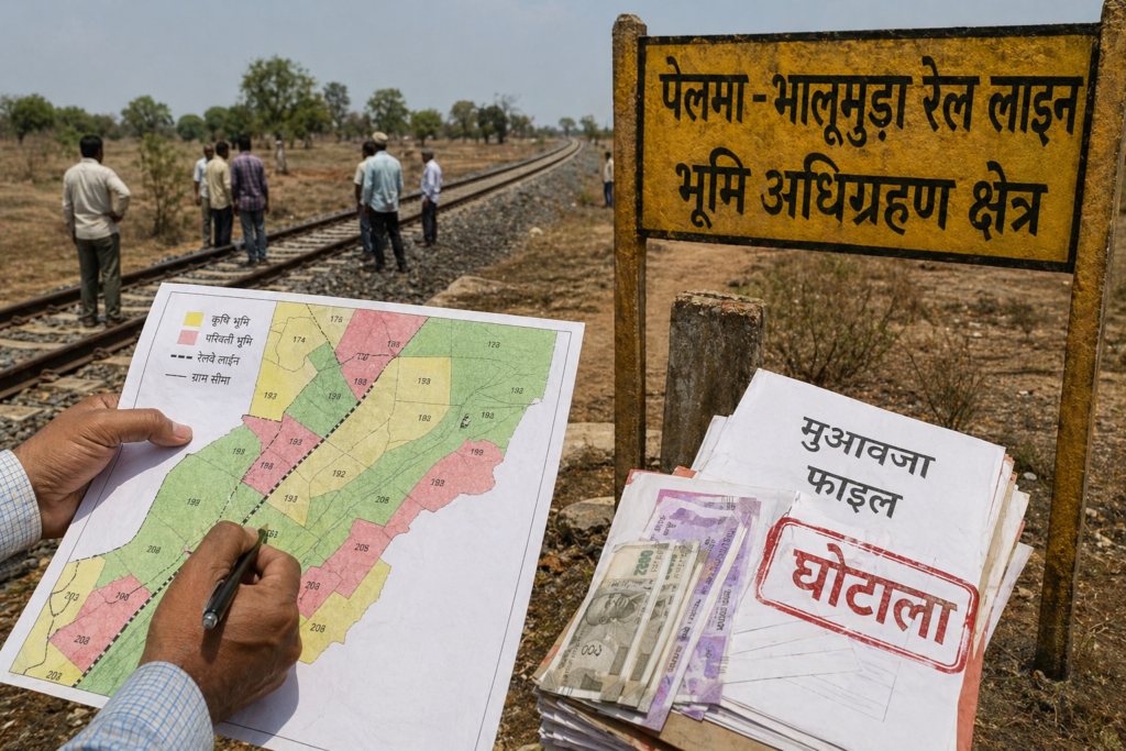 रायगढ़। जिले में भू-अर्जन की प्रक्रिया एक बार फिर सवालों के घेरे में है। पेलमा-भालूमुड़ा रेल लाइन परियोजना, जिसे क्षेत्र के विकास की रीढ़ माना जा रहा है, अब कथित अनियमितताओं और ‘कागजी खेल’ के आरोपों में उलझती नजर आ रही है। हैरानी की बात यह है कि शुरुआती स्तर पर ही आपत्तियां सामने आने के बावजूद न तो गंभीर जांच हुई और न ही जिम्मेदारों पर कोई ठोस कार्रवाई।