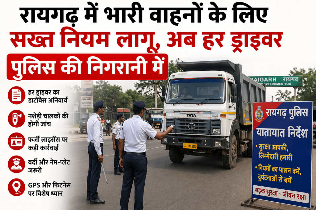 बेलगाम पहियों पर लगाम: रायगढ़ में भारी वाहनों के लिए सख्त नियम लागू, अब हर ड्राइवर पुलिस की निगरानी में