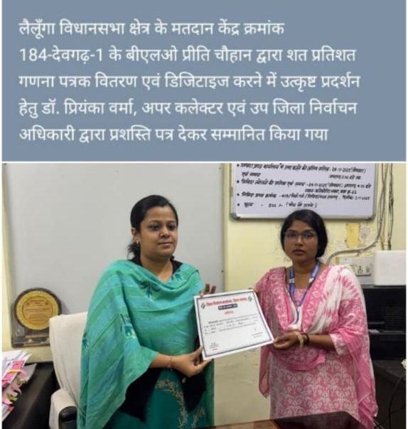 > “निर्वाचन प्रक्रिया में बीएलओ की भूमिका बेहद महत्वपूर्ण होती है। प्रीति चौहान ने लगन और जिम्मेदारी के साथ अपने सभी कार्य पूर्ण किए हैं, जो अन्य बीएलओ के लिए एक उत्कृष्ट उदाहरण है।”