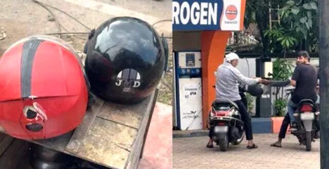 ये कैसा हेलमेट अभियान:पेट्रोल भरवाने पंपों के पास किराए में मिल रहा हेलमेट,रेट केवल 10 रुपए