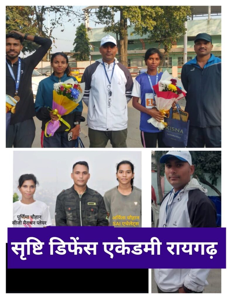 इस मैराथन में सृष्टि डिफेंस एकेडमी की प्रशिक्षु पूर्णिमा चौहान ने महिला वर्ग में शानदार प्रदर्शन करते हुए द्वितीय स्थान हासिल किया। कठिन प्रतिस्पर्धा के बीच पूर्णिमा की यह उपलब्धि न केवल व्यक्तिगत सफलता रही, बल्कि रायगढ़ और सृष्टि डिफेंस एकेडमी के लिए भी गर्व का विषय बनी।