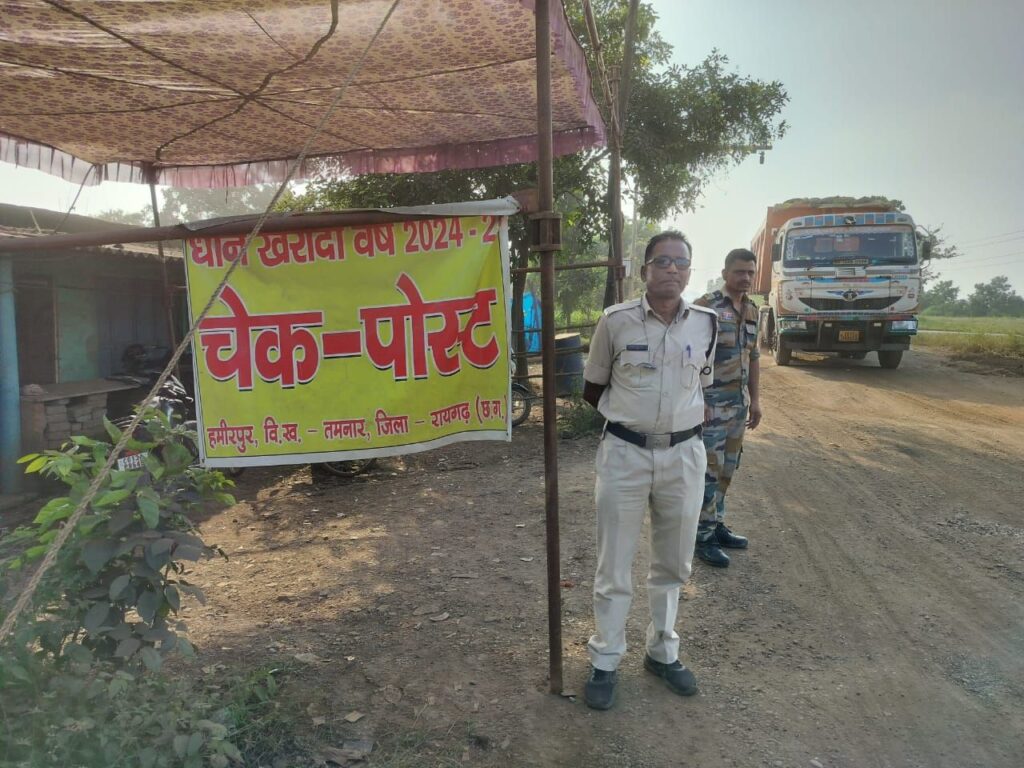एडिटर जर्नलिस्ट अमरदीप चौहान/अमरखबर.कॉम तमनार। धान खरीदी वर्ष 2025-26 की तैयारियों के बीच प्रशासन ने ओड़िशा से होने वाली अवैध धान तस्करी पर रोक लगाने के लिए हमीरपुर बॉर्डर पर चेकपोस्ट स्थापित किया है। उद्देश्य भले ही नियंत्रण का हो, मगर ज़मीनी हालात इस पहल की प्रभावशीलता पर सवाल खड़े कर रहे हैं। क्षेत्रीय सूत्रों का कहना है कि यह चेकपोस्ट “दिखावे की कार्रवाई” से ज़्यादा कुछ नहीं, क्योंकि जिले के कई सीमावर्ती रास्तों से अब भी अवैध धान की आवाजाही जारी है।